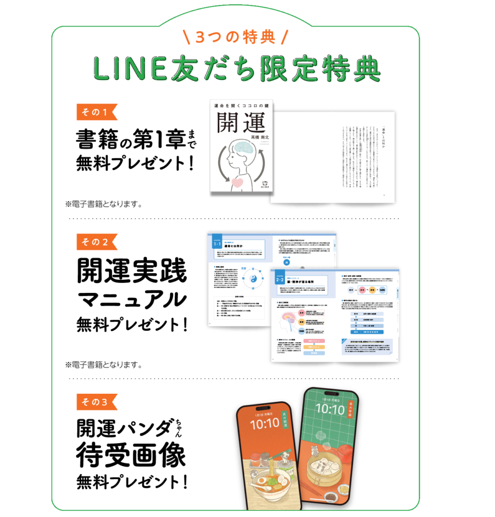 ※友達登録後、トーク画面のメニューにある「LINE登録者さま限定プレゼント」のボタンからお進みください。